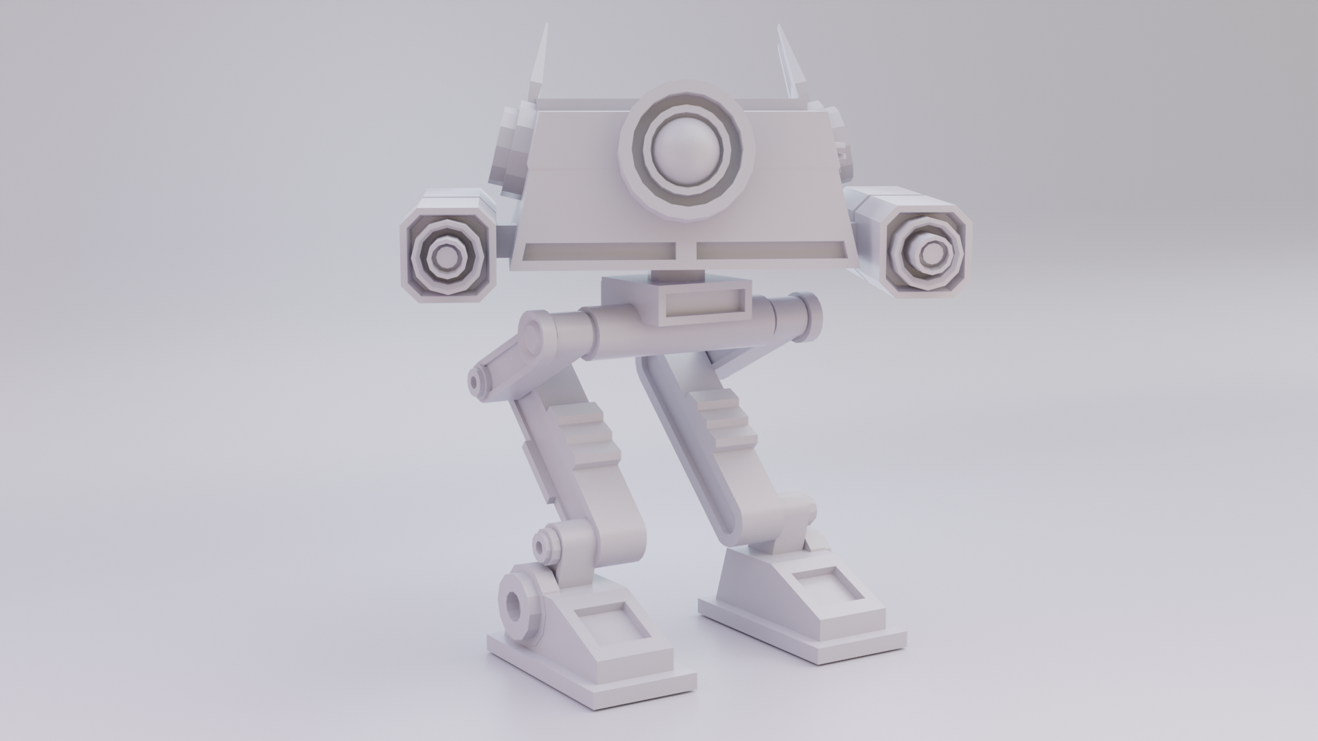 As a display of hard surface modelling this characters boxy silhouette evokes a charming and engaging aesthetic. The chunky components and an oversized ‘eye’ contribute to the character's appearance, making it feel more like a friend than a foe.